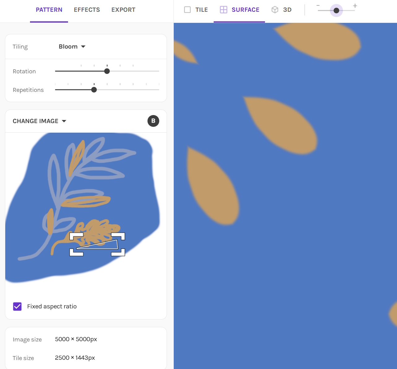 - By default, Repper will apply a repeat type to it and therefore produce a pattern that you will see applied to the right. That’s your base or starting pattern