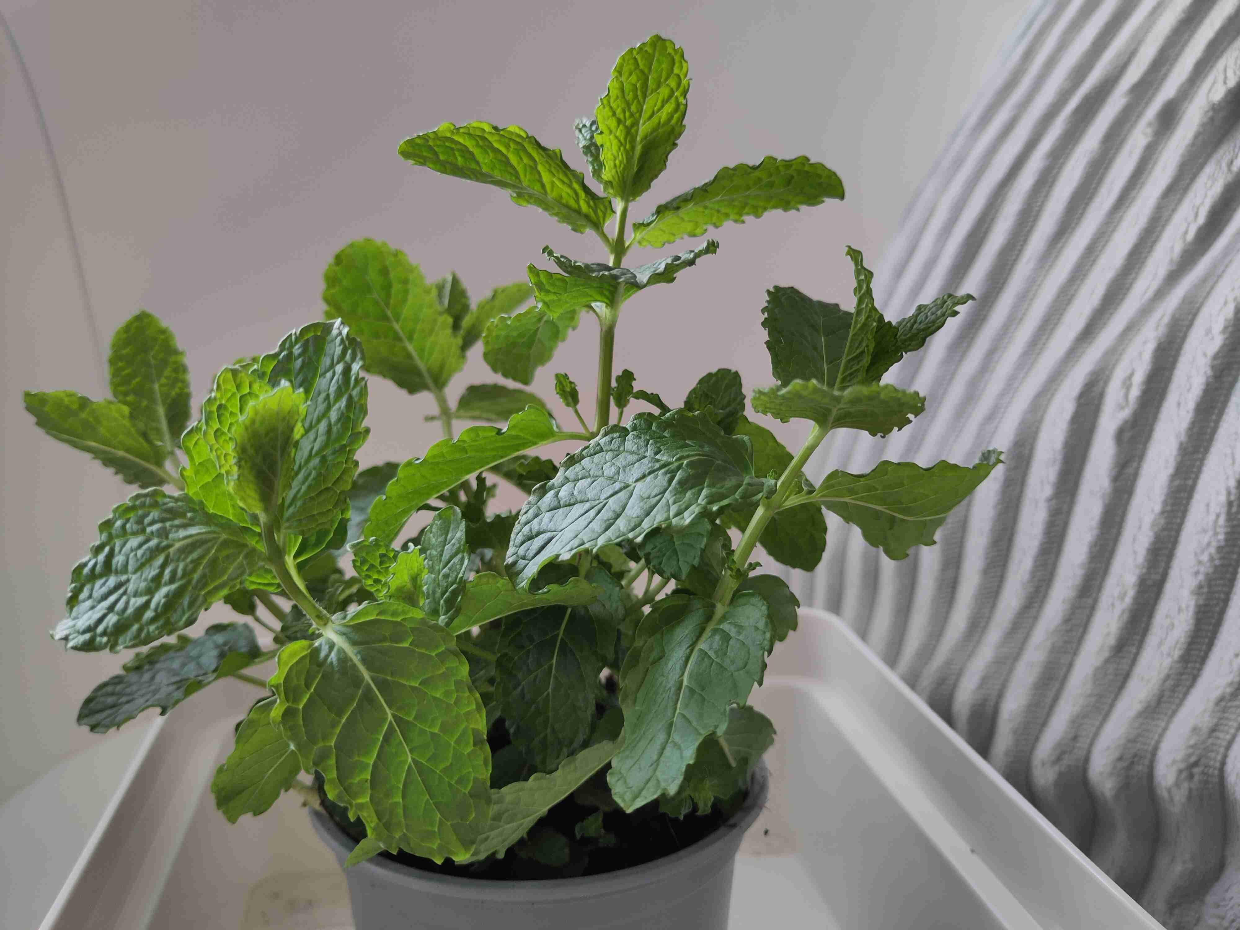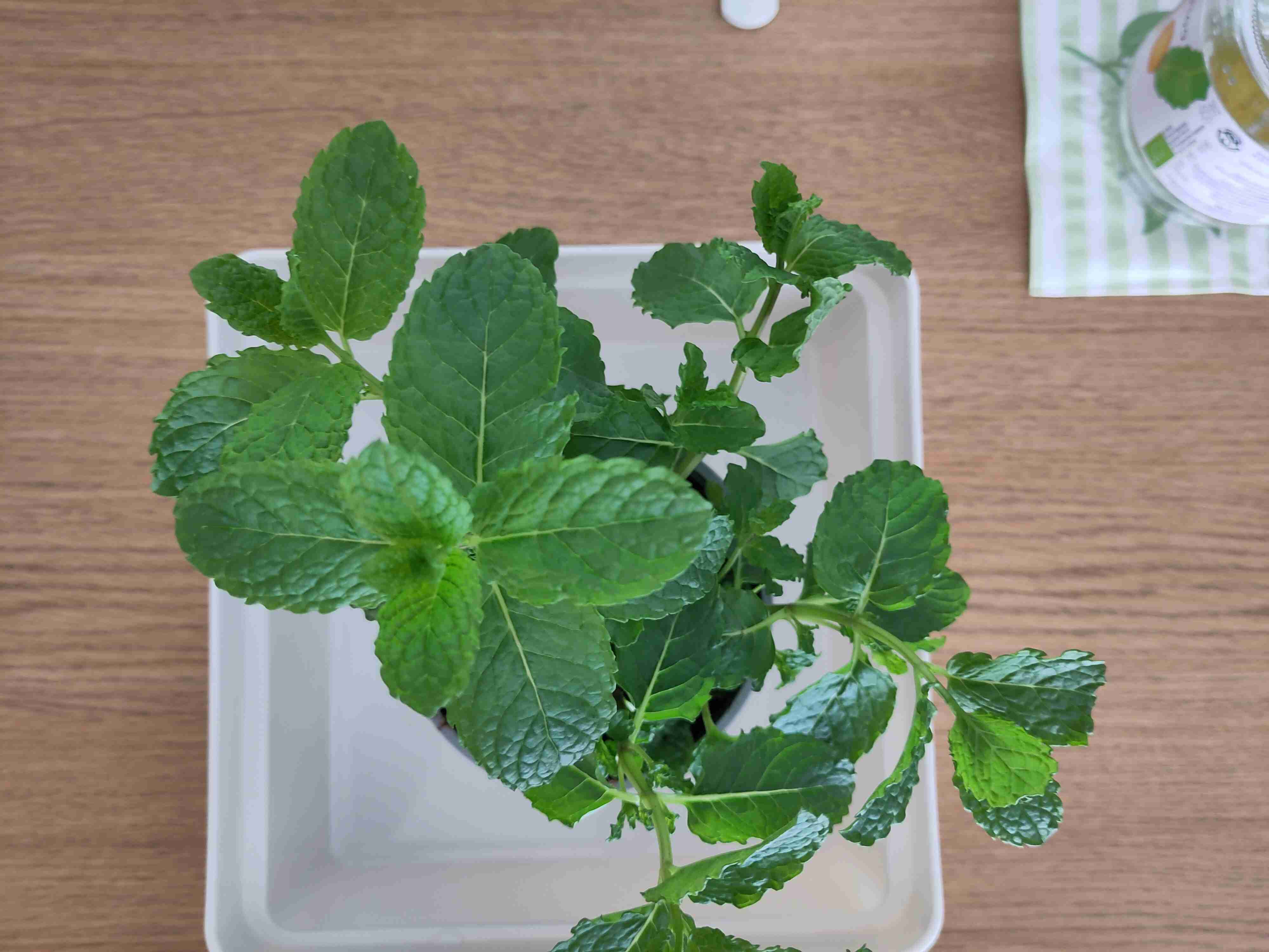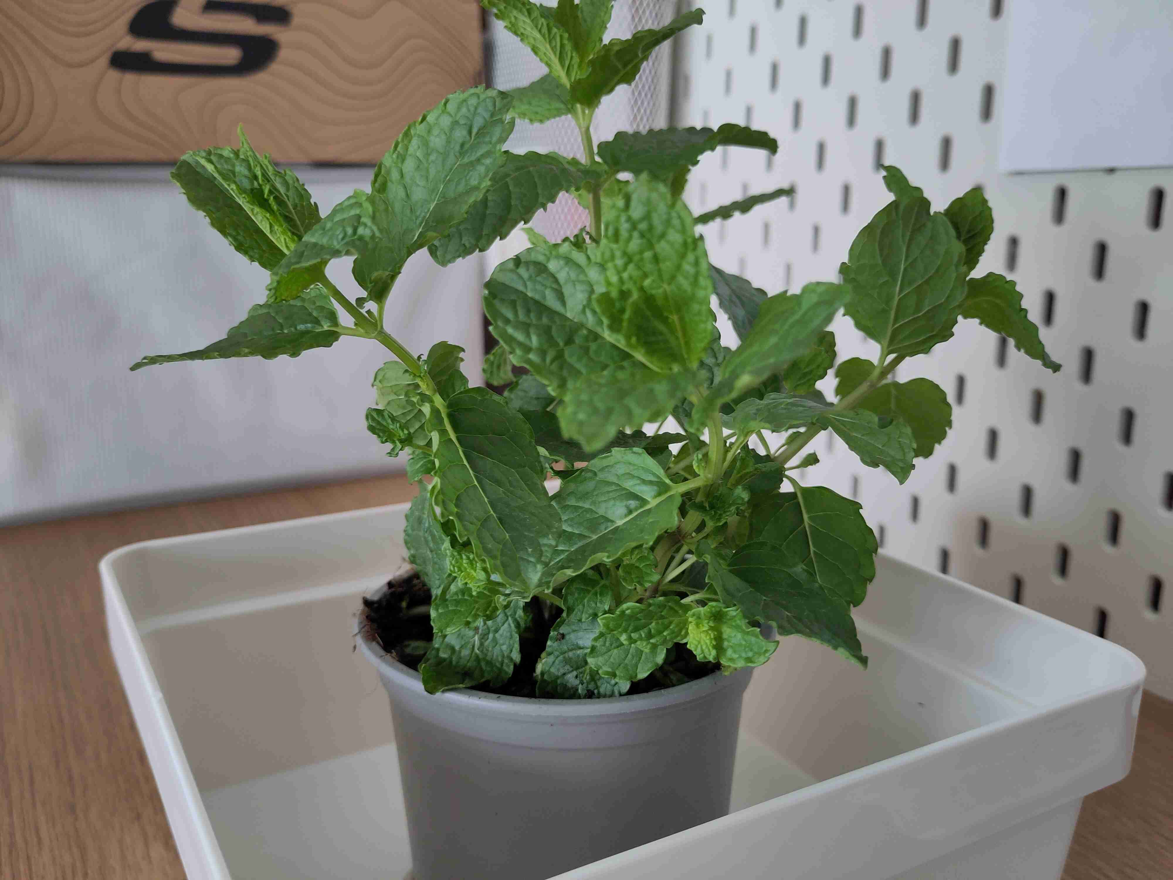 Today I bought a white little container to place my potted mint in so weekly watering doesn’t end up in a mess.