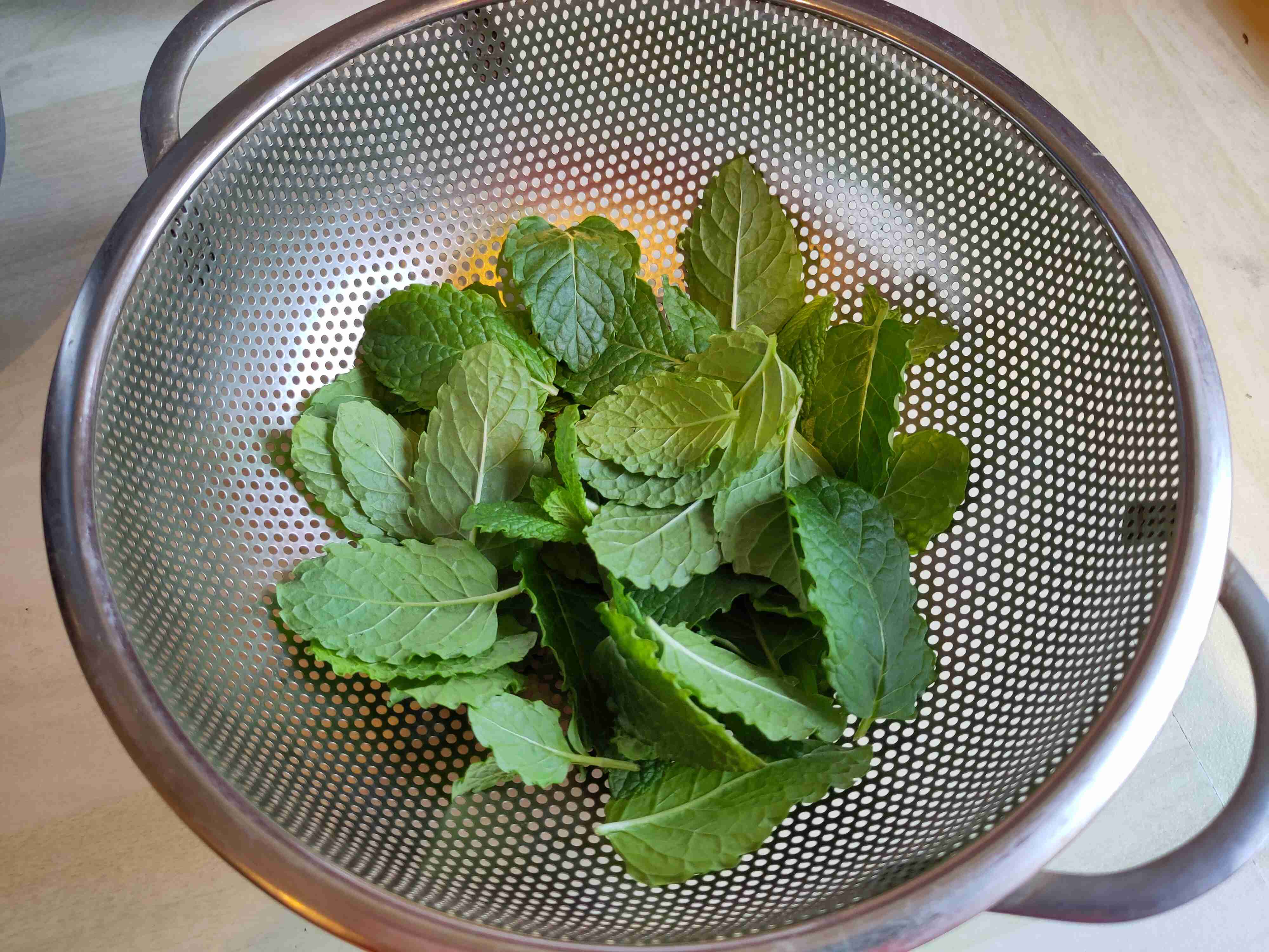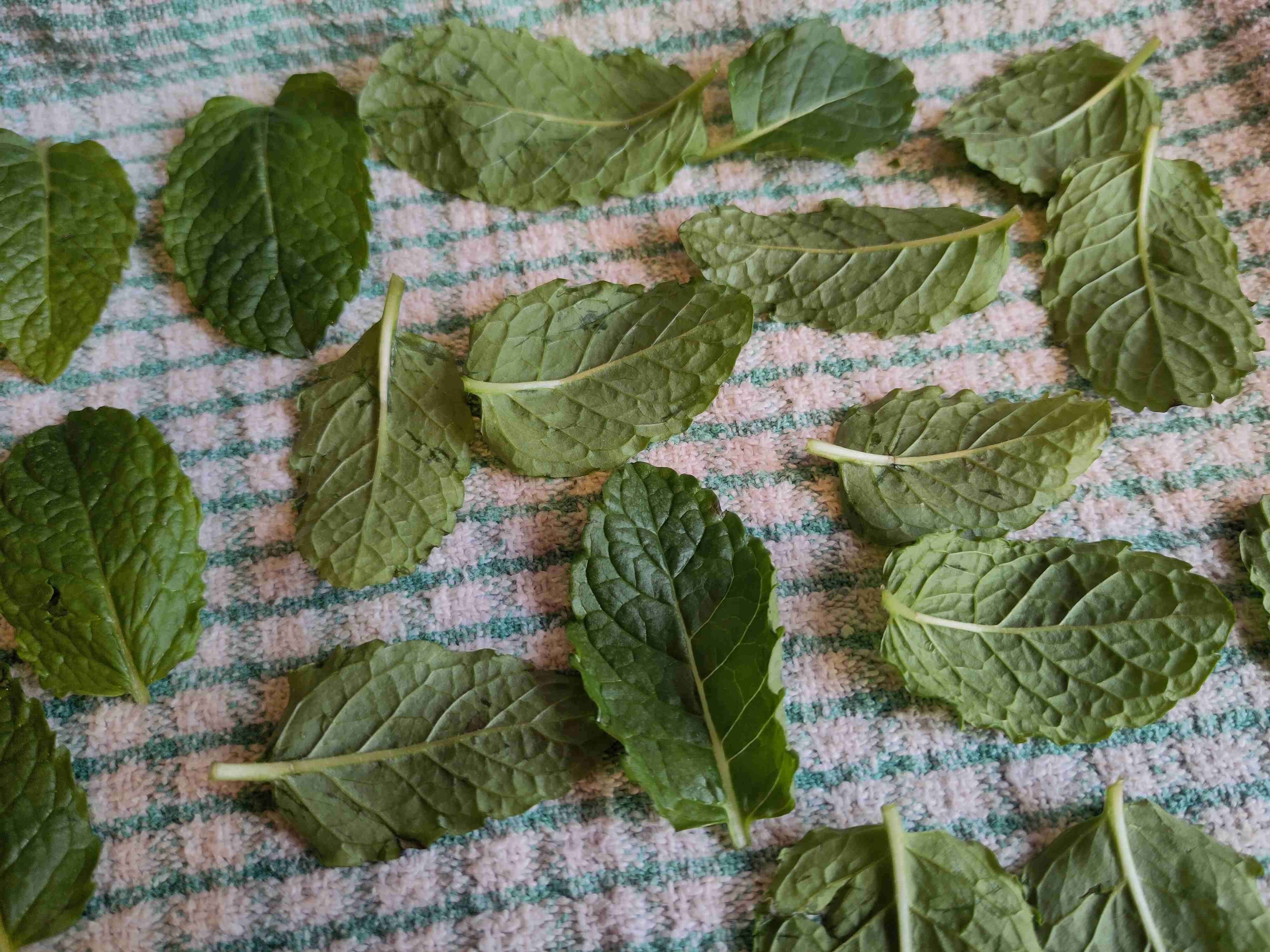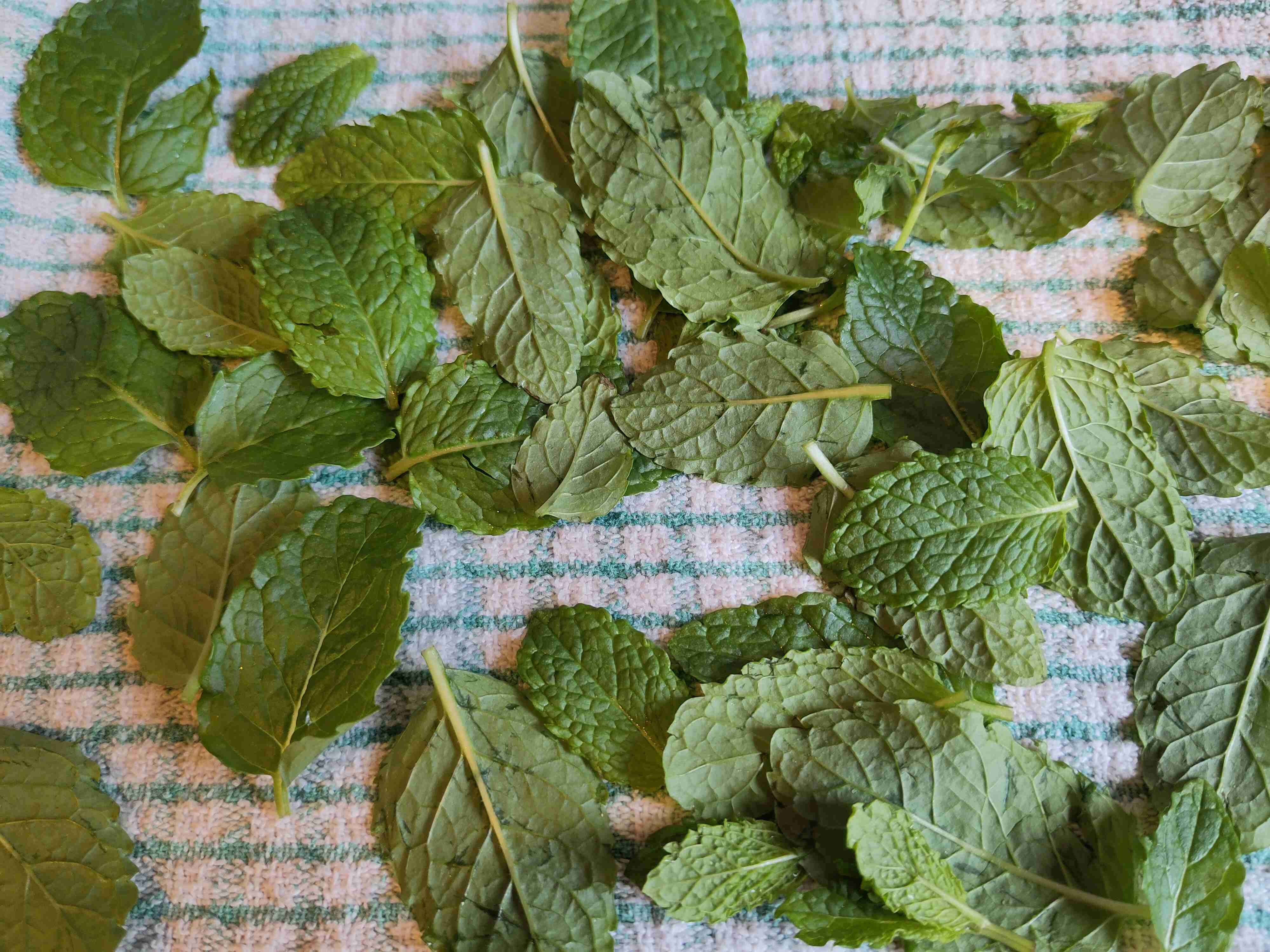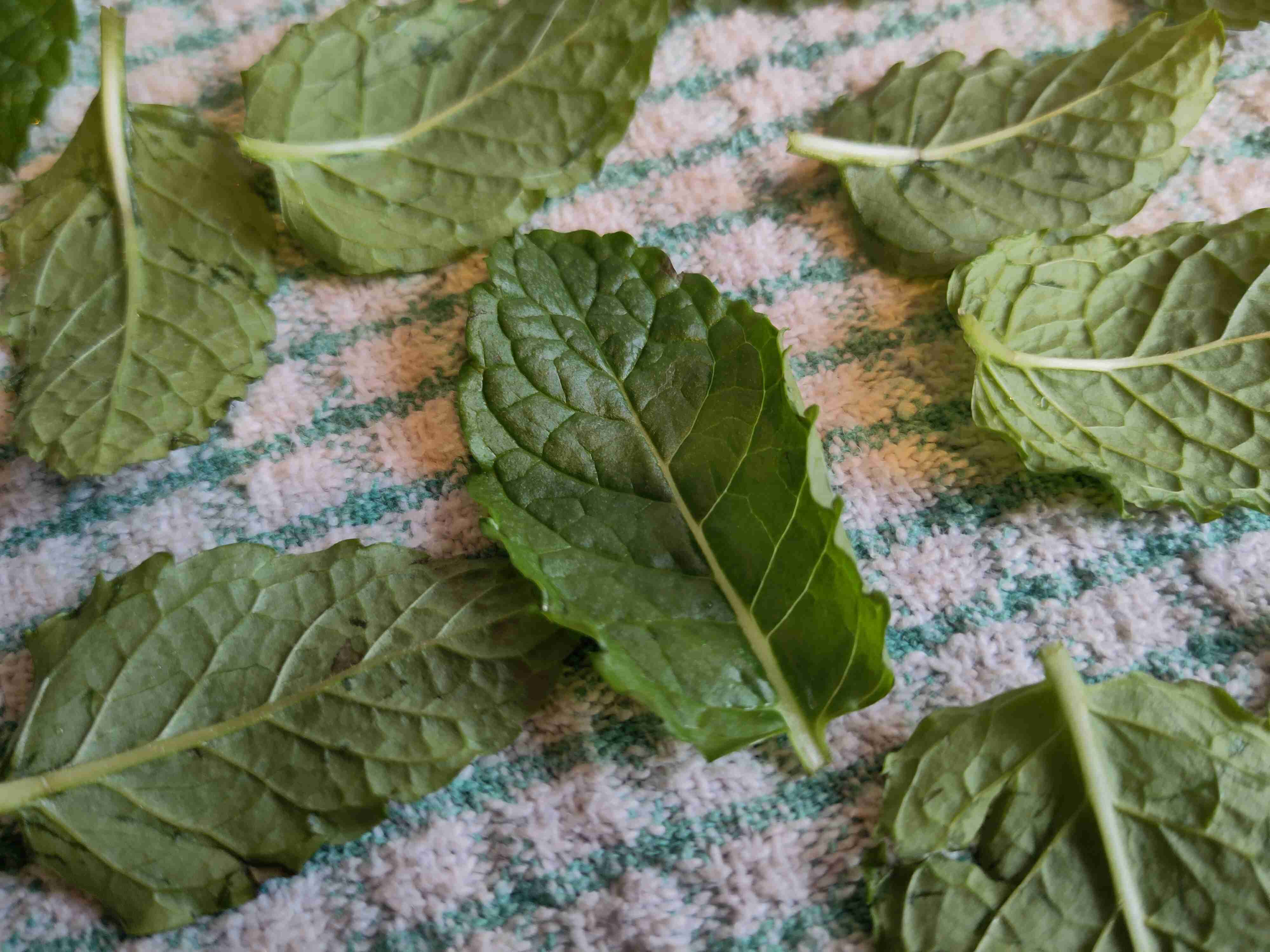 Today I have finally started! I cut my mint, got rid of the stems and kept the bigger leaves that had no sign of darkening. I washed it all in a little bowl of water and colander, then spread it on an oven tray covered with a kitchen towel that I used to dry the leaves. Then I’ve covered the leaves with tissue paper and I’m going to keep it as is for a few hours to ensure these leaves are dried properly before I let them dry in the open air.